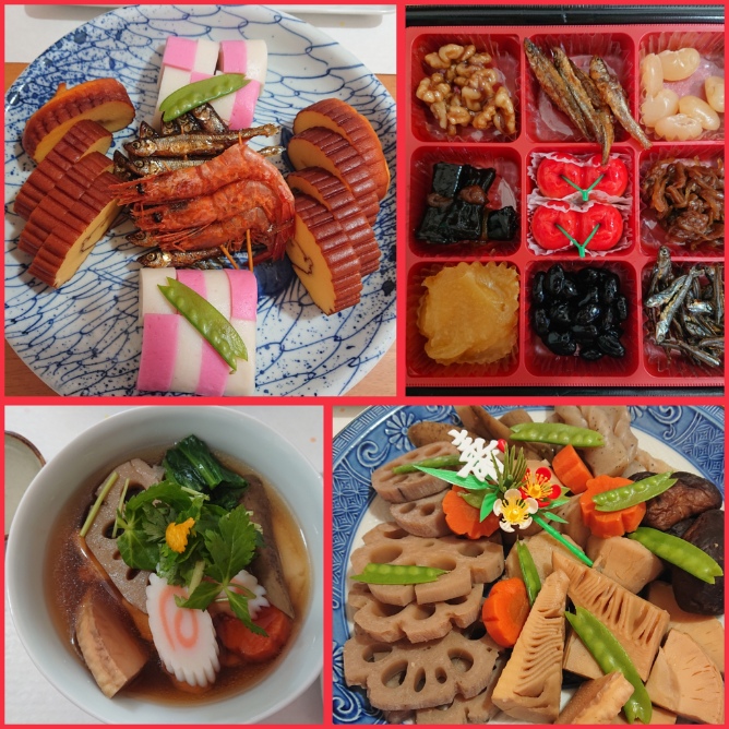 初参りの後、おせちを。お煮しめは作ってみました。大根のなますも美味しく出来たのに写真を取り忘れた。