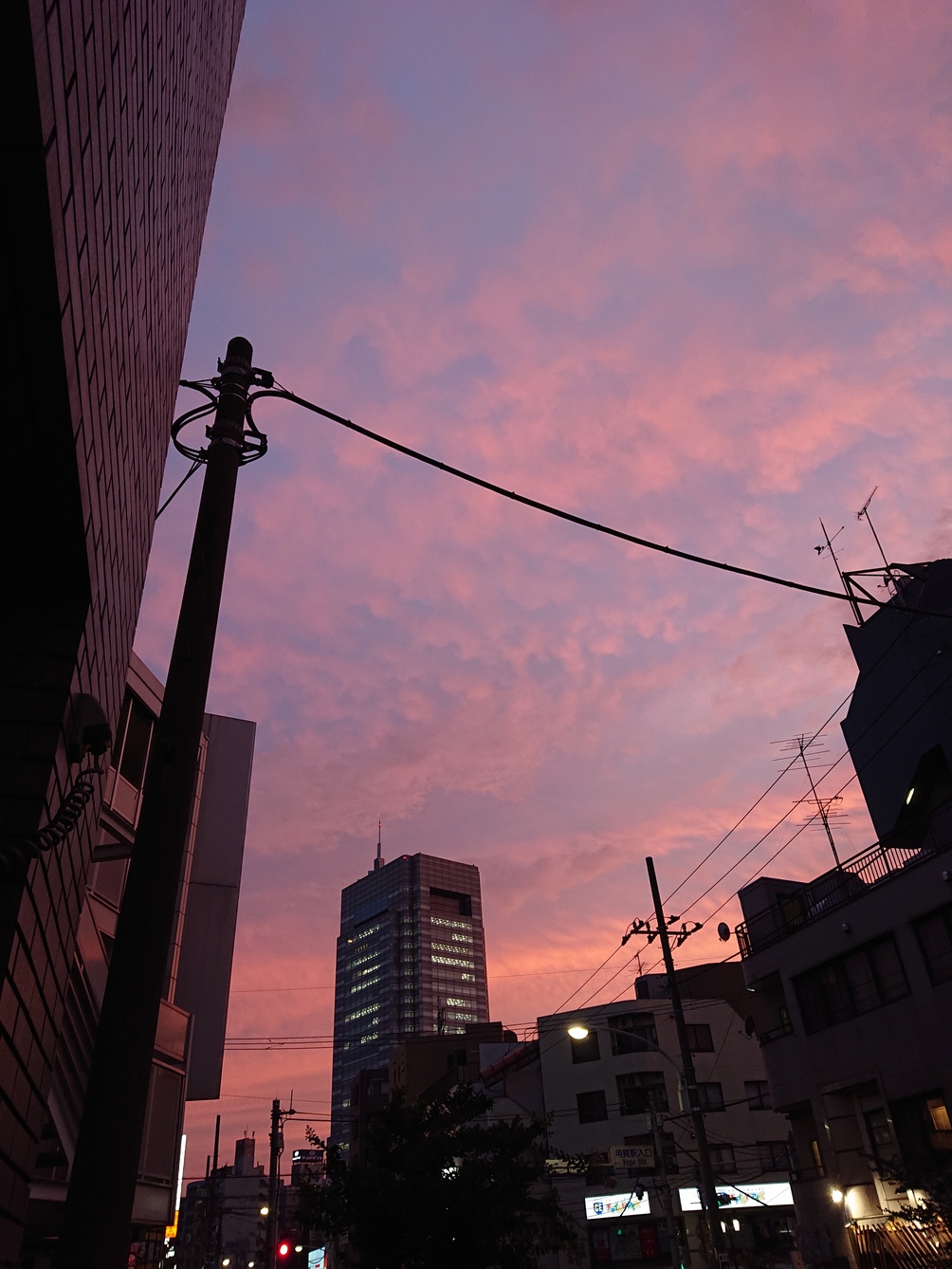 店から 見た夕日